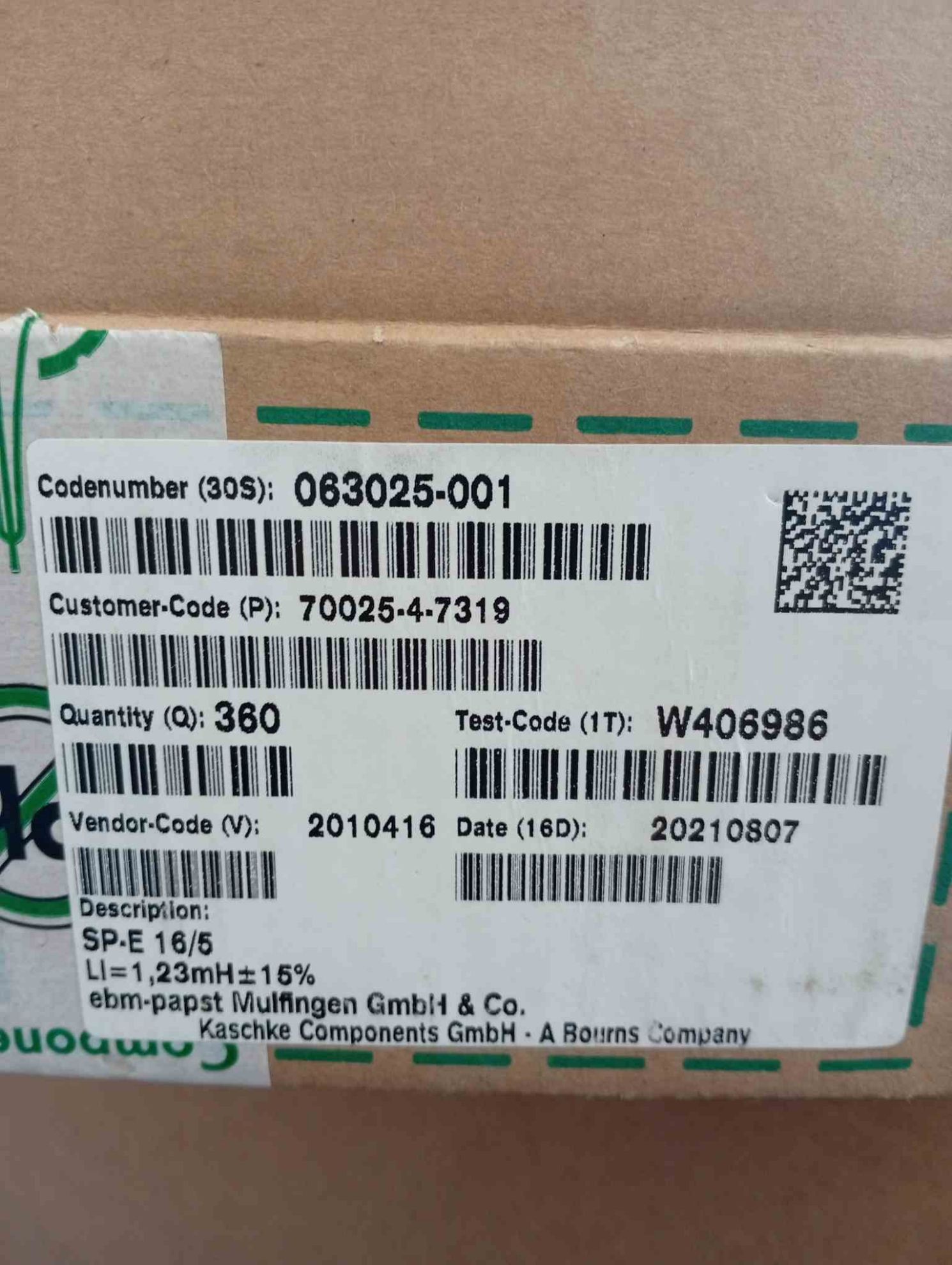 063025-001 SP-E16/5 1.23MH INDUCTOR KASCHKE