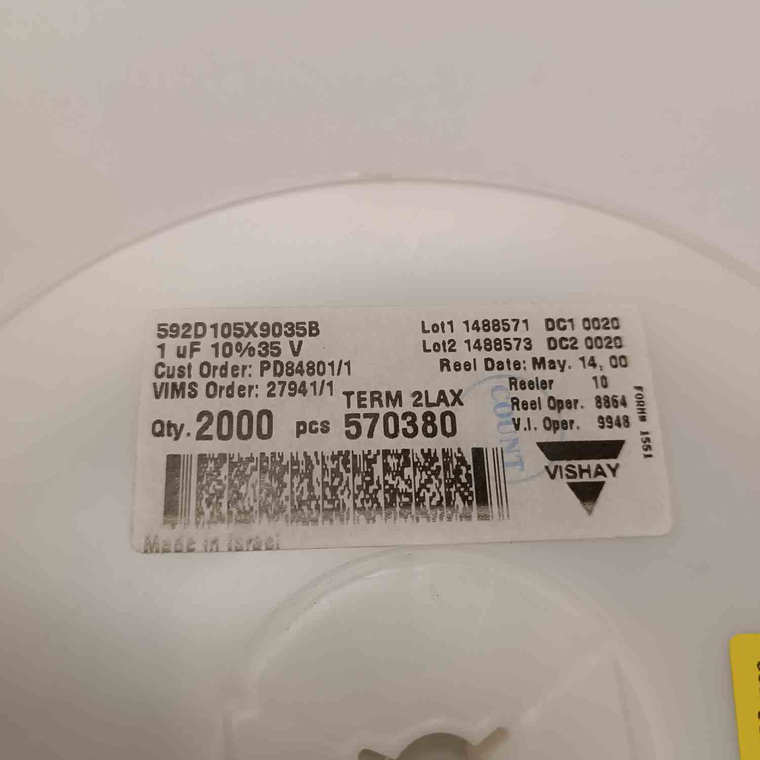 592D105X9035B 1MF 35V B VISHAY TANTAL KONDANSATÖR