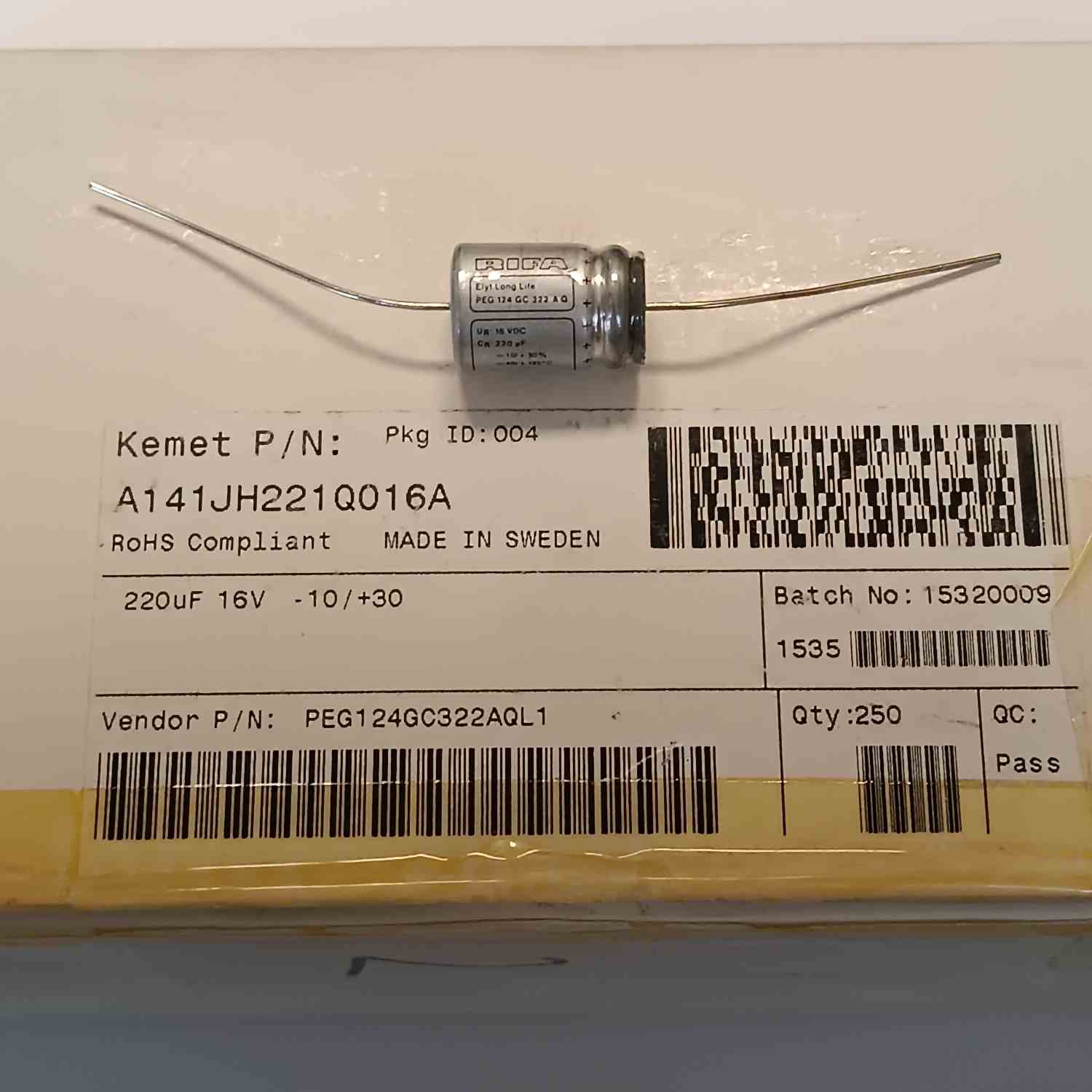 PEG124GC322AQL1 220MF 16V AXSİYEL KEMET AXIYEL KONDANSATÖR